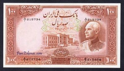 اسکناس ۱۰۰ ریال ۱۳۱۶پشت لاتین رضا شاه،روی اسکناس،Obverse |